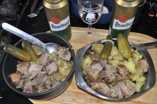 Co dodat na závěr. Výpravu jsme si opravdu užili i díky skvělé francouzské a moravské gastronomii a dobrého cateringu, který jsem pravidelně podporoval mou oblíbenou činností, mytím nádobí. Samozřejmě, nechyběly parádní kaprarské krevety na olivovém oleji s česnekem, dle receptu synka Dadýna a taký luxusní výpečky z vepřového plecka s bramborem od mé milované Ivky /Vladys se rozplýval nad chutnou moravskou žranicí :) /. Taky došlo na dobré pití, Valtické Rulandské šedé, Sauvignon a rum Havana Club k rannímu a večernímu čaje. „Přece takové úlovky se musí taky zapít…„