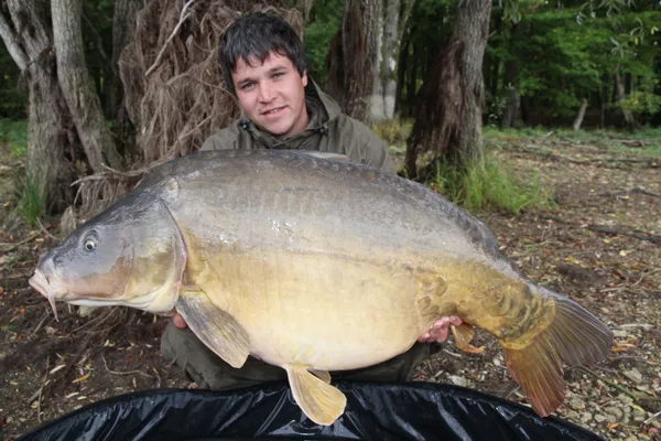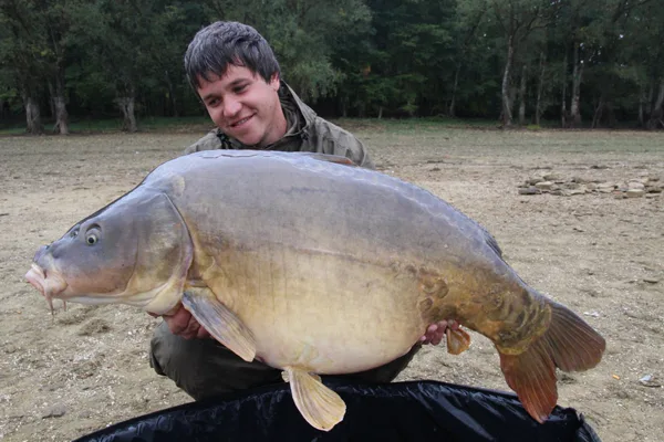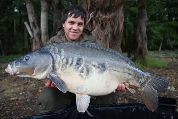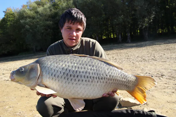 Předposlední noc těsně nad ránem dostávám konečně záběr na levý prut,který jsem měl nahozený v klidové zóně kousek od břehu. Byl jsem líný jít do člunu,tak jsem kapra zdolával ze břehu. Až když se mi objevil před podběrákem, začal jsem být nervózní. Při podebrání jsem musel jít po pas do vody. JO! Je můj. Čistá váha ryby ukazuje 26,60kg! Všechno to vynaložené usílí se vyplatilo! Do konce výpravy už záběr nedostávám…