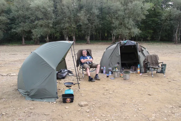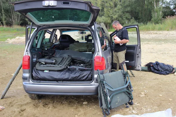 Přehrada, kde jsme chtěli lovit byla kvůli nízké hladině vody zavřená. Po několika telefonátech kamarádům hledáme další varianty. Přijíždíme k jiné přehradě, která je také hodně spuštěná, ale rybolov je povolen. Máme štěstí. Místo, kde jsme chtěli lovit je volné. Během krátké chvíle jsme na fleku. Únava se začíná projevovat. Pruty putují narychlo do vody a uleháme. Hned první ráno dostávám záběr na nejvzdálenější prut a vytahuji 13kg skoro řádkáče. Super začátek. Druhý den si důkladněji mapuji dno. Ale nic nenacházím. Bahnité dno, sem tam nějaká větev a to je všechno. Dvě místa více prokrmuji a zbylé chytám pouze s pár volnými nástrahami.