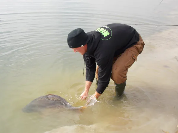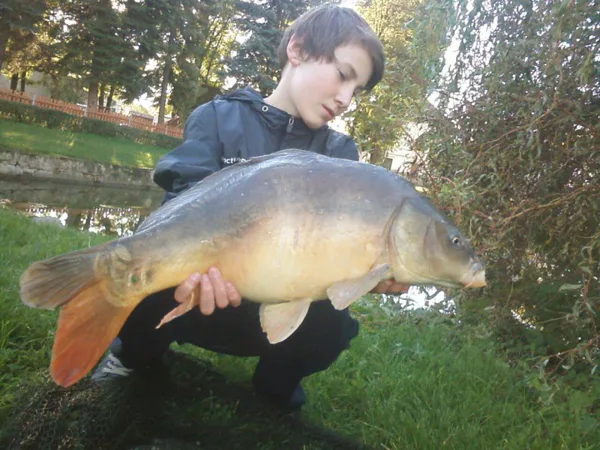Když jsem do delší době nemohl kapra zvednout ode dna a navíc začaly vycházet bubliny, začalo se mi hlavou honit hlavou hodně věcí. Jde pořád o kapra (kterého jsem ještě neviděl) nebo mi nastraženou nástrahu vzal sumec?!? Nervozita začala být znát a ačkoliv jsem se párkrát pořádně opřel do prutu, abych kapra zvednul, po chvíli jsem zařadil zpátečku, abych kapra nevyříznul. V minulosti jsem několikrát kapra při opatřném záběru sice vytáhnul, ale měl to tak na kraji tlamy, že jsem se divil, že jsem ho vůbec vytáhnul. Zápěstí už začalo bolet a má chvíle již přišla. ,,Big fish´´ byla na hladině a tak jsem si jí svépomocí podebral. Na podložce jsem věděl, že jde o pěknou rybu s vycpaným břichem a bylo mi jasné, že bude větší, než předchozí úlovky. Tak kolik?!? 90 centimetrů a 15.... 15,5... a je to tam! 16 kilo!!