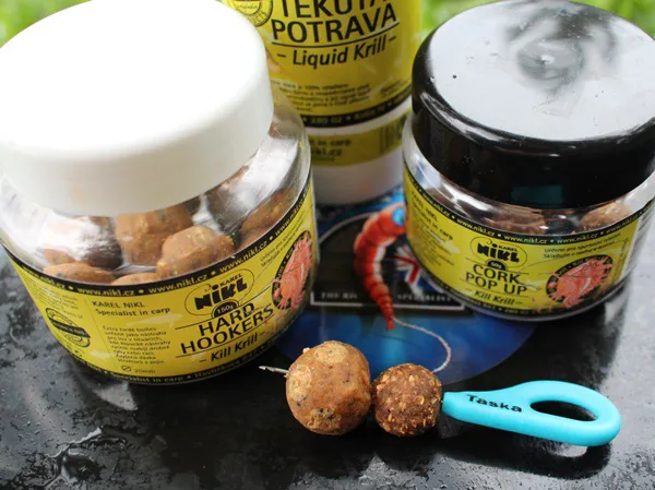 Jako nástrahu jsem zvolil boilie domácí výroby (též ze směsy Enzym fish), které jsem pro účely lovu na řece přizpůsobil a mimo jiné ho pro rychlé chytání zatraktivnil boostrem Kill krill. S prvním náhozem jsem očekával vše možné i nemožné. V prvních pár minutách se ukázalo pár kapřích jedinců na hladině a i kolem mého krmného místa, neboť drbance do vlasce dokazovaly, že jsou kapři na svém místě. Bylo tedy jen otázkou času, kdy to přijde.