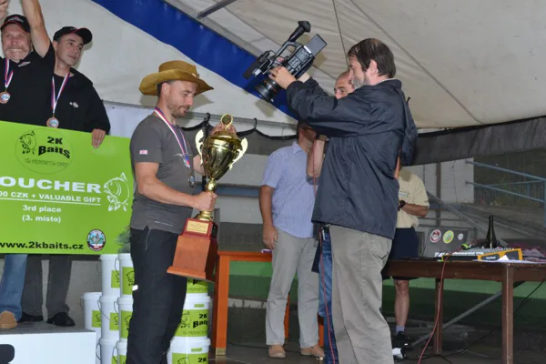 Hodinu před závěrečným hvizdem zdoláváme double – oba kapři mají shodně 54 cm. Tohle je opravdová zátěž na naše nervy. Deset minut před koncem přichází zdrcující zpráva - právě nás o pár gramů předstihli. Další podrobnosti nevíme. Čtyři minuty před závěrečným výstřelem přichází pípnutí, následuje okamžitý zásek! Cejn... Přichází velké zklamání, s touto poslední rybou se rozplývají i naše naděje na vítězství.
