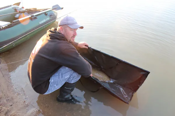Těsně před položením přidávám pva punčochu s 3mm peletami KillKrill,zalité CSL Mixer bloodworm. Záběry na sebe nenechaly dlouho čekat. Kapříci se pohybovali kolem 10kg. Asi po 4 menších kaprech přichází konečně lepší záběr.Úspěšně podebírám šupika s váhou 14,50kg. Paráda.