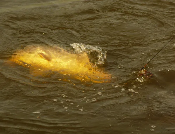 Během pár minut mi bylo jasné, že nahozené pruty nebudou mít dlouhodobé trvání. Hrátky proudu a naplaveného bordelu s vlascem mě nenechali chvíli v klidu, ale když přišla po hodině razantní jízda, bylo mi jasné, že je TAM! Žádný opatrný záběr, žádná pomalá jarní zdolávačka, ale poctivá divoká říční jízda s dlouhým zdoláváním. Dokonce ani v podběráku se kapřík nevzdával a bojoval do poslední chvíle. Míry tohoto krasavce byly 85cm a 10kg. Devill Krill chutnal a proto rychle letěl zpět na své místo.