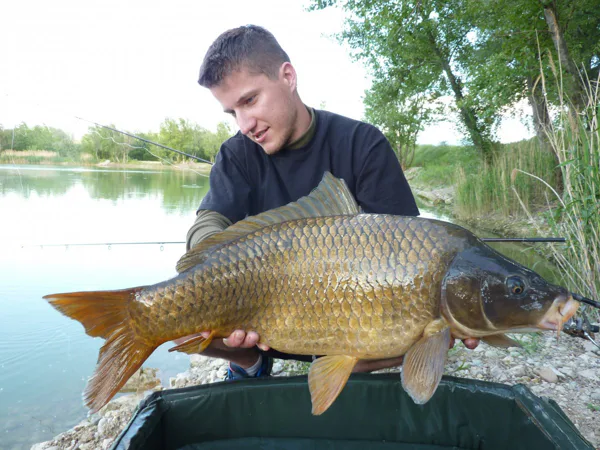 Hodiny pomaly ubiehali a všetky signalizátori mlčali až na tie moje. Mne sa na brehu striedala slušná hromádka kaprov v rozmedzí od 6 do 10kg. Jediný kto chytil aspoň nejakú rybu bol parťák Mišo. Bol som veľmi spokojní a čakal som na noc, kedy sa väčšinou pomýli aj daktorý z tých väčších. To sa aj stalo a ja hneď po zotmený zdolávam šupíka okolo 14kg. Som nad mieru spokojný. Misiu mám splnenú a preto nastražujem na prúty všade po dve 24mm guličky nadipovaného Devill Krilla a ulíham do spacáku. Zaspal som ako malé bábätko a prebúdzam sa až za plného svetla ako inak ako na súvislý zvuk pravého RX-ka. Nasleduje praťahovaná, ktorá sa postupne presúva až na čln, pretože kapra nedokážem pretiahnuť cez štrkovú hranu. Všetko sa dobre skončí a ja privážam na breh mohutného zdravého šupináča isto cez 15kg. Ani ho nevážime, len rýchlo pár fotiek a rýchlo nazad do vody, pretože po skoro 40min súboji je ryba úplne vyčerpaná a preto je lepšie ju čo najskôr pustiť nazad do vody. Kapor bol vyčerpaný až natoľko, že po pustení odplával asi iba 1,5 metra a tam zostal pri dne odpočívať. Stále som ho kontroloval a čakal ako sa zachová. Prešla asi pol hodinka a on si pomaly otočil naspäť ku brehu, ladným oblúkom preplával okolo miesta kde som ho čupiačky pozoroval a zmizol v hĺbke. Asi sa chcel ešte rozlúčiť