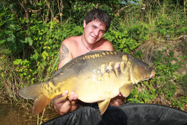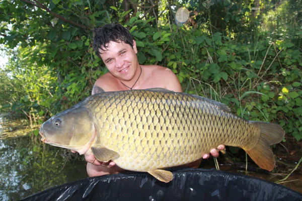 Oba pruty nahazuji přímo do krmného místa do hloubky 10m. Prvního záběru se dočkávám hned po 2h lovu. Jedná se o krásného 9kg lysce. Kapra si fotím a v tom se mi rozjíždí i druhý prut. Úspěšně zdolávám šupika 10,50kg. Takhle rychlé záběry jsem opravdu nečekal. Oba pruty nahazuji,jdu se vykoupat a schovat se pře sluníčkem.
