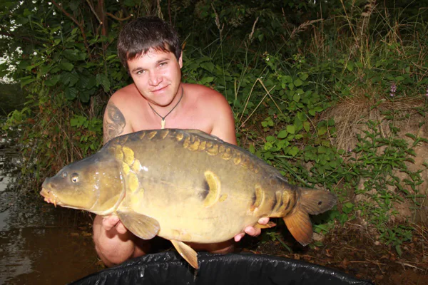 Byl jsem překvapený z toho, že jsem dělal pravidelné záběry převážně ve dne, v těch největších vedrech. V sobotu navečer už se rozhoduji nekrmit. Přeci jen do vody putovalo velké množství krmení a teď nastává doba,pokusit se místo takzvaně " dochytat". Tato taktika už se mi několikrát vyplatila a vlastně i tentokrát. Záběrů mám méně,ale za to od větších ryb. Tím největším byl 15kg lysec,chycený na jednu 21mm kuličku EXTASY.