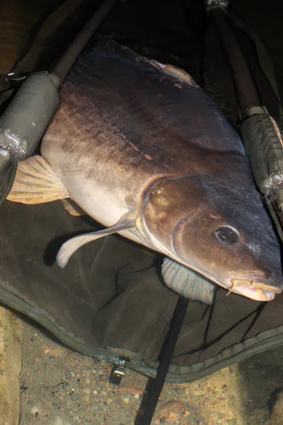 Tentokrát jsem chtěl lovit úplně jinak, než jsem zvyklý. Pruty nahazuji až kolem 22h večer, tudíž pouze na 2h. Záběr dostávám téměř okamžitě a hned od slušného kapra s váhou 13,50kg. Prut už znovu nenahazuji a věřím v záběr na druhý prut. Toho se dočkávám těsně před půlnocí. Jedná se o velkého cejna. Chystám ještě nové návazce na ráno, předmáčím 10kg Extasy, natahuji budíka na 4h ranní a jdu si lehnout.