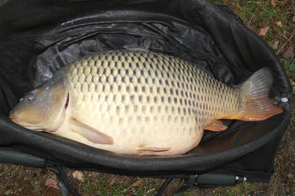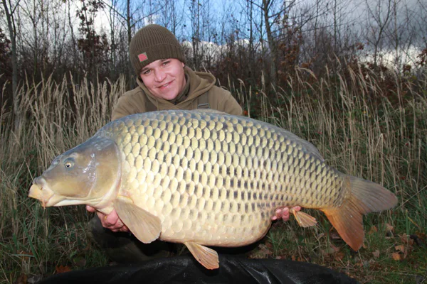A právě už v tomto chladném období se podařilo ulovit fantastického šupináče s váhou 23,50kg. Tento kapr se stal mým novým osobním rekordem v šupináči, uloveného u nás v ČR. Chytil jsem ho při jedné krátké vycházce. Úspěšnou nástrahou se stalo boilie 3XL. Místo jsem si ráno předkrmil 3kg totožného boilie. Chytal jsem na jednu 18mm kuličku, dipovanou v totožném dipu, kterou jsem měl ještě obalenou v pastě.