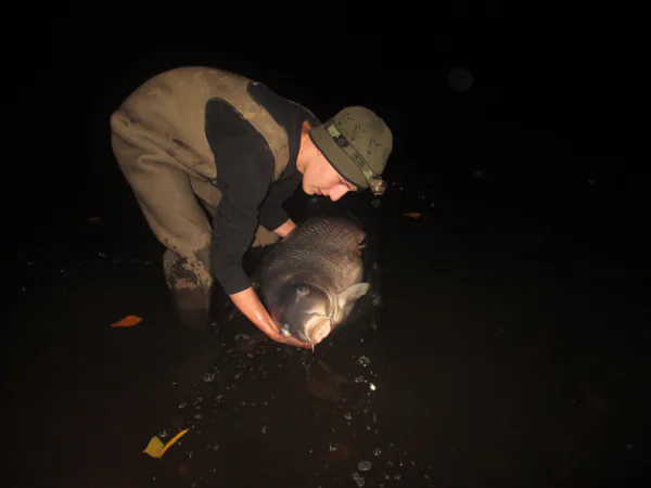 Čas na řece jsem trávil, na rozdíl od léta, jen takzvaným dloubáním v nose. Jinak řečeno, snaha ulovit jakéhokoli kapra byla úplně marná, ať jsem dělal, co jsem dělal. Mírné zlepšení se dostavilo až když voda klesla pod 12 stupňů. Mě se v tu dobu podařilo ulovit aspoň pár náhodných ryb do 12-13kg. Na přelomu měsíce října a listopadu nastal čas vyměnit neplodnou řeku za území podvodních lavic ve vnitru jedné velké pískovny. Měl jsem podzimní prázdniny, týden volna a tak jsem s velkým množstvím krmení směřoval právě tam. Extáze a KillKrill, jasná volba. Ihned po příjezdu letělo do vody několik kilogramů boiliesu. Těsně před setměním bylo vše připraveno a já mohl v pohodlí svého lehátka připravovat první večeři. Během prvních dvou hodin se podařilo ulovit pět kaprů okolo 5-7kg a já věděl, že jsem tu dobře. Odbila hodina osmá a já dostal další zběsilý záběr na pravý prut. Po zvednutí prutu z vidlí ovšem můj protivník ztěžkl a jen pozvolna pohupoval hlavou.