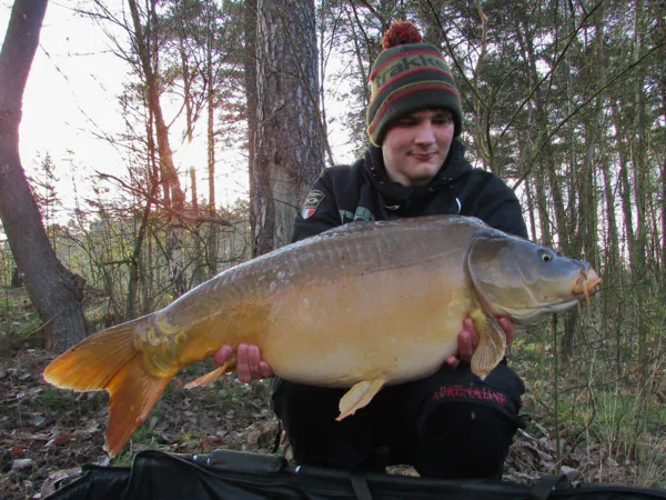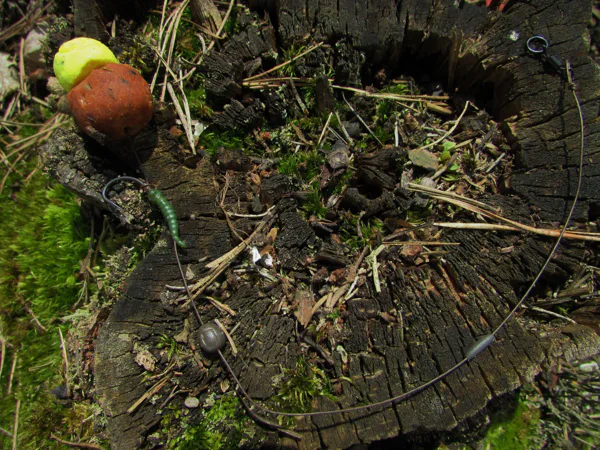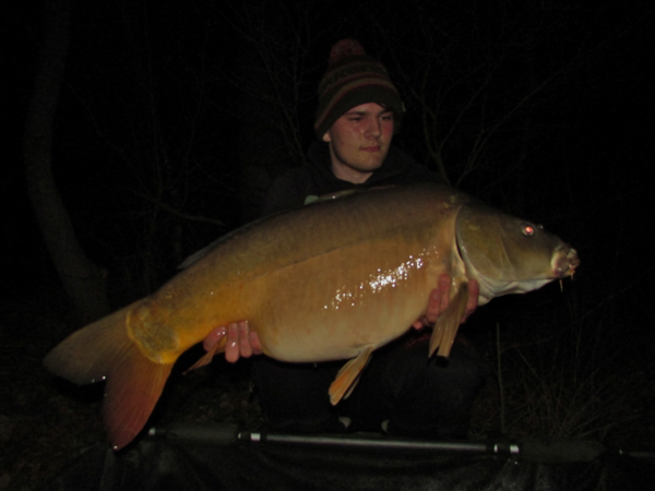 Zvolil jsem mělčí část revíru, kde byla voda díky slunnému počasí již pěkně prohřátá. Pro první prut jsem zvolil místo pod převislými stromy s písčitým dnem a hloubkou kolem 1 m, kde se otočilo několik kaprů. Druhé místo jsem zvolil též u druhého břehu, ale s hloubkou kolem 2 metrů. Montáže jsem zvolil klasické a to ze šňůrky Strip-X s háčkem Continental vel. 6. Co se týče krmení, na tuto výpravu jsem si vzal naší pikantní delikatesu a to boilies Devil krill, které jsem si ještě pořádně prolil stejnojmenným boostrem. Jako nástrahu jsem používal řádně nadipovaného panáčka, nebo pop up dumbells téže příchutě, každou montáž jsem ještě doplňoval malou PVA punčoškou se stickmixem Secret spice. Na první záběr jsem nemusel dlouho čekat, chvíli po setmění přišla i první jízda. Hned po zvednutí prutu mi bylo jasné, že by se mohlo jednat o slušnou rybu. Po 15 minutách plných nervozity a adrenalinu se mi rybu podaří navést do podběráku. Po chvíli si již můžu potěžkat krásně stavěného masivního lysce, prostě nádhera!