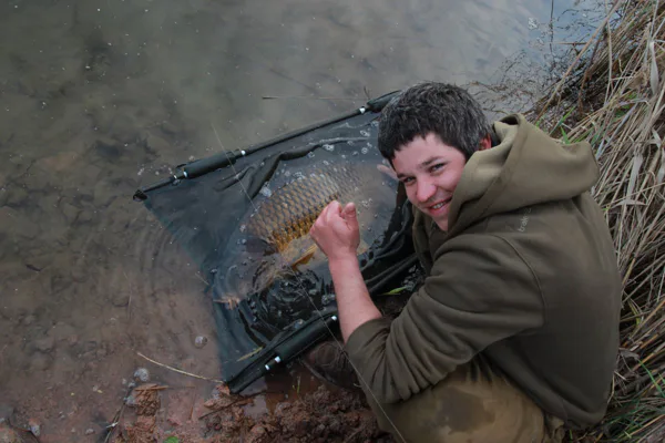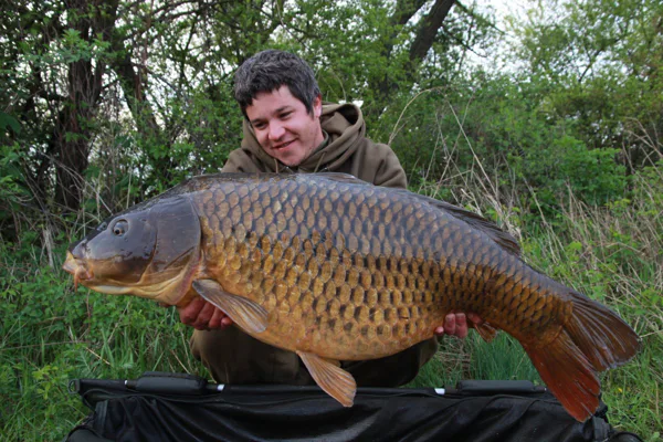 Ráno, těsně před odjezdem do práce mi jednou pípne příposlech a za několik vteřin už slyším nepřetržitý zvuk. Během chvilky držím prut v ruce a cítím silný a tupý tah ryby. Po 20-ti minutovém souboji podebírám dlouhého širokého šupináče. Váha ukazuje 22,20kg! Radost nezná mezí, vytahuji pruty a s úsměvem hurá do práce...Usmívající se