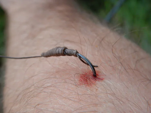 Na poslední vycházce k vodě jsem měl i jeden nepříjemný zážitek. Při náhozu se mi povedlo pověsit montáž na větev nade mnou. Při snaze vyprostit ji, se mi to sice povedlo, ale mojí neopatrností skončil háček v mé levé ruce. Poprvé v životě jsem nadával, proč ty centuriony jsou tak ostré. Vedle mě chytal David Fořt, který měl s vyndáváním háčku už zkušenosti :-) Z jeho slov „ si chlap, něco vydržíš, podej kleště“ mi do smíchu nebylo. Operace dopadla ale výborně a návštěva v nemocnici nakonec nebyla tak nutná. Na rybách buďte opatrní a relaxujte.