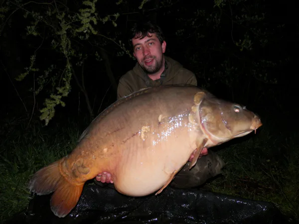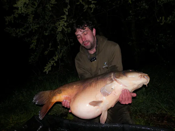 Po setmění stojím u prutů a poslouchám vodu, zda-li se mi na fleku neotáčí ryby. V tom náhle píííp, cívka navijáku se brutálně roztáčí. Hned po záseku je cítit pomalý, ale těžký tah. Po chvíli se ryba jen převaluje. Když jsem ji dostal do podběráku, nemohl jsem ji ani zvednout. Říkám si jooo, to je on, na kterého čekám. Po zvážení a odečtení tašky váha ukazuje 23.4 kg. Zůstávám v šoku. Prostě neuvěřitelné! Následuje pár fotek a rychlé, šetrné vrácení ryby, tam kam patří .