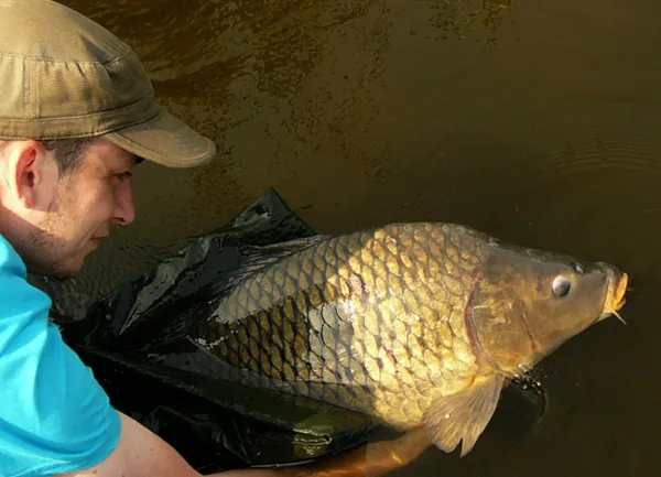 Něco podobného jsem už zažil na jiném úseku řeky a tak jsem tušil, že by mohlo jít o pěkně stavěného a bojovného lysce. No a měl jsem pravdu. Další kapr atakující 80ti centimentovou hranici. Jeho váha byla 10kg.