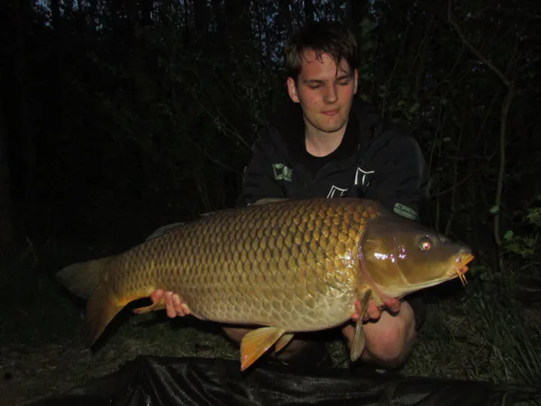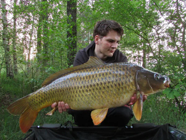 První krátkou vycházku jsem naplánoval na druhý květnový víkend. Po příchodu ze školy jsem vše bleskově sbalil a co nejrychleji vyrazil k vodě. Po krátké obchůzce kolem vody, jsem zpozoroval několik kaprů v malebné písčité zátoce s pomalu se svažujícím dnem až do hloubky 2,5 m. Po několika hodech markrem se mi podařilo najít vhodné místo i pro druhý prut. Jako krmení jsem zvolil předmáčené boilies Extasy a také můj oblíbený Kill Krill s pořádnou dávkou krillového liquidu. Záběr na sebe nenechal dlouho čekat a po zhruba 15 minutovém souboji jsem si mohl potěžkat první květnové torpédo.