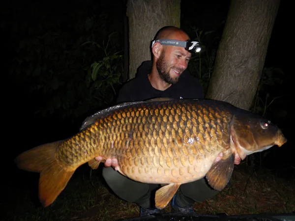 V proudné řece je souboj s rybou těžší než na stojáku a tak po patnáctiminutovém boji se kapr vyřezává kousek od podběráku. Odhadem mohl vážit kolem 14 kilogramů. Jelikož jsem měl letos pomalejší start do sezóny a moc se mi nedařilo, tak mě to mrzelo… Ale nedá se nic dělat, i to k tomu prostě patří. Moje montáž byla jednoduchá. Patnáctilibrová šňůrka Strip-X, mouthsnagger shorty a háček Centurion č. 4. Krmné místo mi začalo krásně fungovat a intenzita záběrů se zvyšovala. Během večerního focení se na podložku podívali další tři kapři. V jednu chvíli jsem si opravu myslel, že se mi to všechno jen zdá. Nebyl problém udělat i pět záběrů za hodinu a za první dva dny jsem udělal víc jak dvacet záběrů a z toho jen pět ryb bylo pod hranicí 9 kilogramů. Takové šílenství jsem ještě nikdy nezažil!  Třetí den bohužel přichází vydatný déšť.
