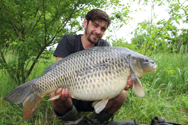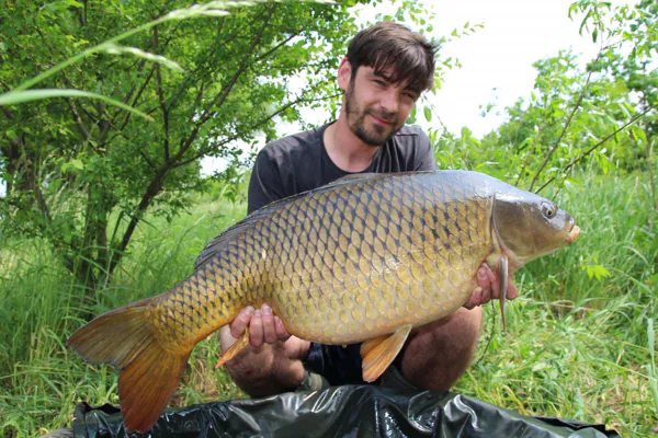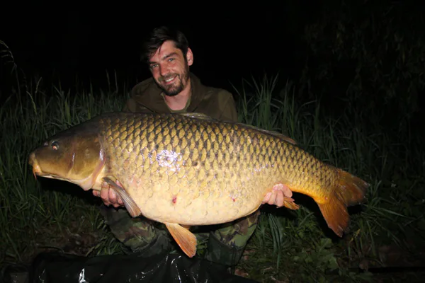 Tato ryba mě dodala jistoty v mém počínání. Prut opět nahazuji na stejné místo a lehce dokrmuji. Záběry dostávám pravidelně a během 3 dnů se mi daří tahat krásné říční kapry. Čtvrtý den byl však vyjjímečný. Přišla změna počasí a to se projevilo i na rybí aktivitě. Během celého dne jsem se záběru nedočkal až v podvěčer dostávám první záběr tohoto dne přímo z koryta řeky. Už od začátku je mi jasné, že se jedná o slušnou rybu,která si to namířila proti proudu řeky. Po 20 minutovém souboji podebírám svůj nový osobní rekord z řeky. Velký šupináč byl konečně můj!!!