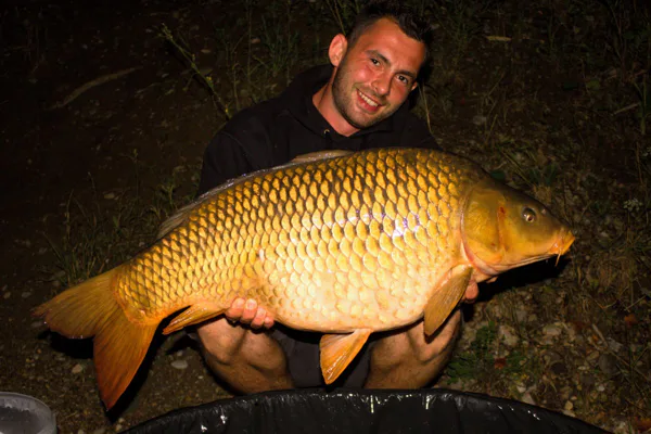 2x sonik do auta, kýbel s kŕmením , stojan, brolko, podložka, podberák niečo pod zub a už som valil autom smerom k vode. Príchod na miesto , pripravenie montáží 2X Longshank nailer č.8 na Strip x , 2x24mm Scopex/Oliheň a 2x24 mm Salmon/Peach. Na každú udicu asi po 1 kg boilies a už som si len užíval prichádzajúci letný večer .Do rána , kým som mal baliť nezostávalo veľa času a vedel som ,že ma doma čaká práca tak po ľahkej večeri som sa uložil do spacáku. Nad ránom pred svitaním ma zobúdza môj hlásič a po asi 15 minútach zdolávania podoberám krásneho šupíka na Scopex/Oliheň , ktorému som navážil 14,8 kg.Celý šťastný kapríka púšťam späť do vody, slniečko vychádza a ja si varím ranné kafe a pomaly balím s úsmevom na perách.
