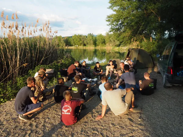 Spoločne s Milošom sme s chlapcami prebrali zákony prírody a zároveň mnoho tipov a trikov ako prekabátiť miestne kaprie. Náš dobrý kamarát Branko nie len že navaril luxusný jelení guláš ale po Milošovej prednáške chalanom poukazoval a vysvetlil základy správneho markrovania a ďalekého nahadzovania. Prednášky boli veľmi poučné a zaujímavé, ale večer sa pomaly blížil a tak sme chlapcom podarovali sponzoring od Karla v podobe niekoľkých kilogramov Gigantiky spoločne so všetkými potrebnými atraktormi pre finálne zatraktívnenie nástrah a základnou kaprárskou bižutériou.