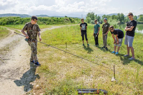 Na druhý deň ráno sme pre chlapcov prichystali dve náročné úlohy. Prvou z nich bolo trafiť sa prútom na cieľ vo vzdialenosti 70m. Distance sticks si splnili svoju úlohu na jednotku a každý už po niekoľkom pokuse vedel ako si správne zaklipovať vlasec tak, aby sa terča dotkli čo i len kúsok. Druhou, zábavnejšou disciplínou bol hod paintballovou guľôčkou na terč pomocou Carbon Sky Sword MKII. Pri tejto disciplíne sme sa ku chlapcom samozrejme pridali aj my.