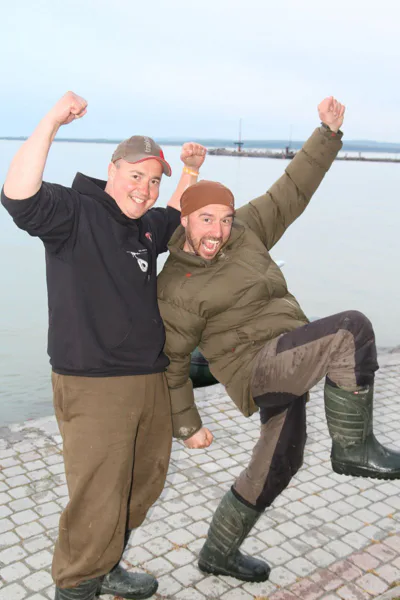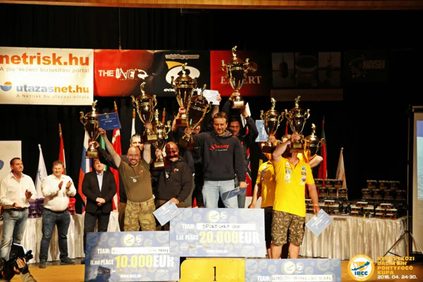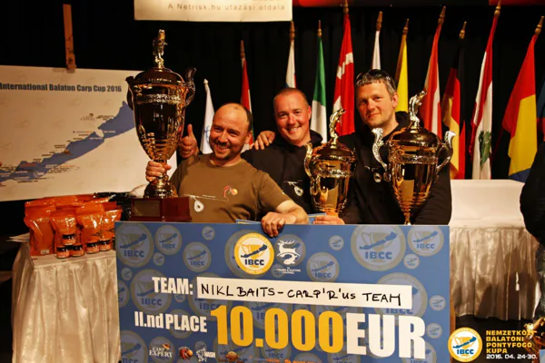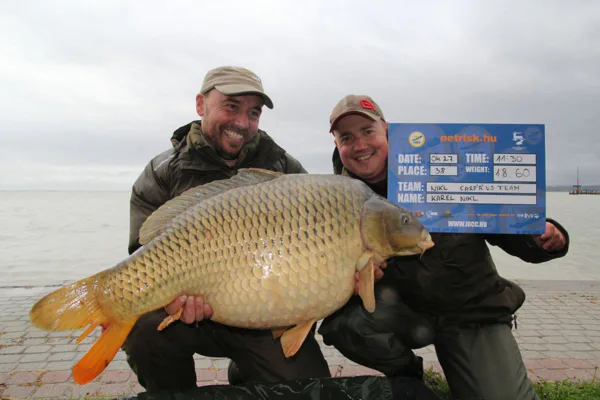 Darilo sa to už prakticky hneď po prvom zavezení prútov, pretože hneď prvú noc sa mi podarilo zdolať obrovského lysca s váhou 17,7kg. Hneď druhú noc ďalšieho a zároveň jedného z najkrajších kaprov, akého som kedy ulovil s váhou 14,9kg. Samozrejme sa nejaké bodované rybky podarilo zdolať aj Karlovi, dokonca ulovil obrovského šupináča 18,6kg a všetky tieto úlovky nás rázom posunuli na absolútnu špicu štartového poľa.Tam sme sa ďalšími úlovkami udržali až do samého záveru, kde nás predbehli iba chalani zo Sportcarpu a nám sa ušla (aspoň pre mňa) vynikajúca druhá priečka.