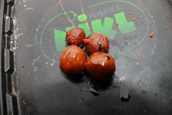 Místo jsem zvolil v hlubší části pískovny. Jeden prut jsem zkusil na lavici v 7 metrech a druhý pod lavicí ve 12 metrové hloubce. Ze začátku bral pouze prut z 12m a v půlce týdne se vše otočilo a už jezdil jen prut z lavice. Krmil jsem vždy jen pár kuliček po 4 hodinách, aby na krmném místě stále něco zůstalo. Za týden se mi podařilo udělat 12 záběrů a dostat na podložku 12kaprů.