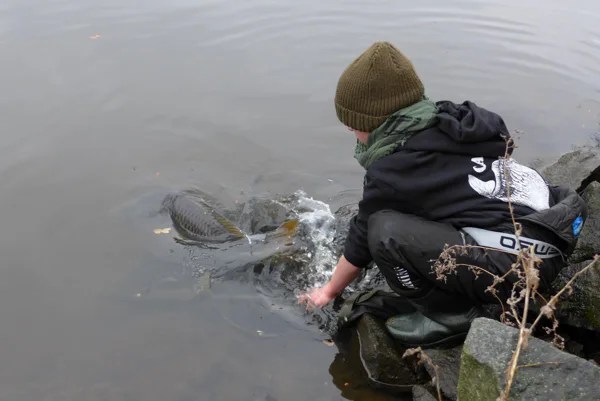 Další adventní výprava nám totálně propršela a prosněžila, byla mlha a sychravo. Musím však konstatovat, že nám to vůbec nevadilo, jelikož ryby byly evidentně aktivní. Byl to kouzelný den, kdy na co sáhnete, to se vám podaří. Ještě dopoledne jsem dostal záběr a zdolal krásného, mohutného a vysokého lysce. Jeho zimní barvy byly úžasné, a když mi ho Miky podebíral, byl jsem v euforii. Přijel za námi kamarád, se kterým jsme se viděli u řeky minulý týden. Dobrou náladu a pobyt u vody jsme si užívali. Chvíli na to se rozjel Mikyho prut a při zdolávání dalšího parádního lysce jsem dostal opět záběr i já. „Pánové, tak to vypadá na pěkný double.“Prosincový „carpfishing“ přesáhl všechna naše očekávání. Luxus. Poděkovali jsme za fotodokumentaci a společně pustili tyto fešáky zpět do řeky. Do konce lovu jsme byli už bez ryby. Rozloučili jsme se a za intenzivního deště se sněhem vyjeli opatrně k domovu podělit se o zážitky se svými blízkými.