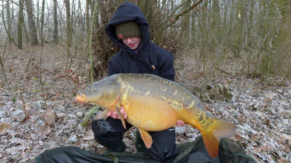 Máme nahozeno co nevidět, pěkně jsme si to s tátou vychytali. Při vaření zázvorového čaje si potichounku pouštíme naši oblíbenou pohádku od pana Wericha Rozum a štěstí. Při této pohádce jsem totiž dostal už čtyři záběry a mám ji moc rád i před spaním. Hezky posloucháme a najednou se nám rozjíždí prut úplně nalevo. Rychle k němu běžím a snažím se vůbec nedupat, abych nevyplašil naše lovné místo. Táhnu brutálně silnou rybu. Přetahuji se s ní asi dvacet minut a jdu jí naproti po břehu. Když taťka podebírá krásného ohromného lysce, skáču na břehu radostí. Moc se mi kapr líbí, hezčího jsem nikdy nechytil. Při vážení koukám na mincíř a vidím, že je to můj osobák. U focení jsem se pěkně zapotil.