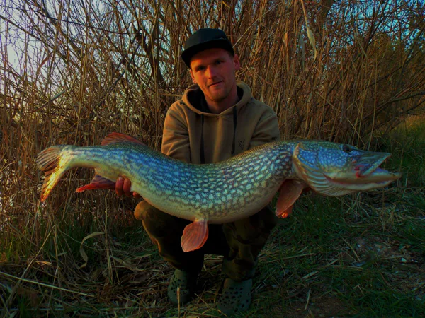 Z pátečního dne lovím pouze dvě hodiny. Dělám si návazce a unaven ulehám do spacáku. Ráno vstávám o hodinu dříve, než je povolená doba lovu a připravuji si krmení. Mým cílem je zdolat prvního kapra z této vody. Taktiku volím 3 kg methot mixu Devill Krill a k tomu 2 kg 10mm peletek Kill Krill. Tento mix spombuji do klidné vody přede mnou. Návazce zhotovuji z 25lb Clearwateru a háčku Centurion velikosti 8. Na tento prut nabíjím pop-up Ripe Banana 14mm, namočenou v esenci scopex a přidávám koncentrované sladidlo. Tento krok se sladidlem se mi v jarní vodě už párkrát osvědčil. Druhý prut je připravený pěkně na dno s 18mm boilies Scopex-Sguid. Kuličku obaluji obalovačkou stejné příchutě a vše posazuji pod vodní hladinu do všude přítomné trávy. V sobotu mám dost času na seznamování se s novou vodou a pohledem na krásnou, pomalu se probouzející přírodu. Blíží se pátá hodina odpolední a já se rozhoduji přehodit prut, který se nachází na dně. Smotávám, když vtom, zhruba 20 metrů od břehu, na boilies zaútočila nenasytná štika. Nastal boj, i když ne zrovna ten, pro který jsem si přijel. Po úspěšném zdolání nevěřím svým očím. Štika 11kg a 108cm je pro mě životním zážitkem. I když ne zrovna chtěným, přesto mi štičí krokodýl dělá radost! Bohužel, první den na nové vodě prožívám bez kapra. V neděli ráno vše opakuji, jen předělávám prut na dno. Navazuji metroví zig rig. Tento způsob lovu není mým šálkem kávy, ale všude přítomná tráva mi nedává na výběr.