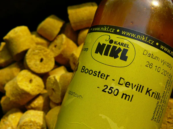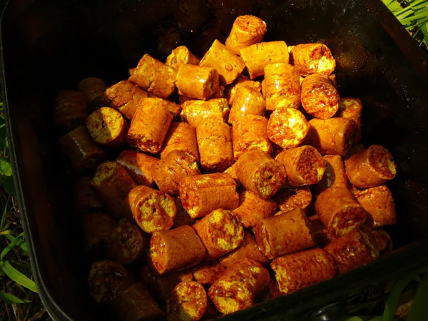 Pro tento lov jsem jako nástrahu použil 14mm pop-up boilie Pineapple dream, které se díky přirozenému pohybu vznášelo na obratlíku na háčku Centurion 2000 ATS vel. 6 s červem Mouthsnagger Shorty black – vše od firmy Carp´R´Us. Tuto nástrahu jsem prezentoval nějakých 5 cm nade dnem. Při této výpravě jsem krmil pouze peletami, které jsem přelil boosterem KN s příchutí Devill Krill. Pelety jsem nechal cca 15 minut nasáknout a mezitím jsem si připravil a nahodil oba pruty. Krmil jsem pouze naboosterovanýma peletami, které jsem házel do vody krmnou lopatkou a vzhledem k tomu, že nešlo o žádnou dálku, ale pouze o odhozovou vzdálenost, měl jsem oba pruty nahozeny tzv. pod nohama. Tato taktika byla zároveň cílená, protože když jsem na tomto stojatém revíru sledoval okolní rybáře, každá montáž směřovala do prostředka této lokality. Proto jsem zvolil opačnou taktiku. Očekával jsem, že se budou kapři spíše zdržovat poblíž břehu, kde mají klid. Tato teorie se mi také potvrdila hned po půl hodině od prvního nahození a trvala až do západu slunce. Zažil jsem tak neuvěřitelnou sérii záběrů od pěkných ryb. Abych udržel kapry na místě, po každém záběru jsem okamžitě dokrmoval několik lopatek naboosterovaných pelet. Chtěl jsem tak vytěžit z mého lovného místa naprosté maximum.