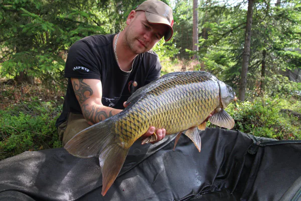 Těžko dostupnou stranu vody volím z důvodu velkého tlaku na vodu od „rybářů“, kteří nemluví naším jazykem a jsou velmi hluční. Místo kde budu chytat mám dopředu vybrané a tak rovou stavím brolly, připravuji montáže, jedu položit bójku. Rozkrmuji plošně asi 7kg Massive Feedem zalitým tekutou potravou. Jsou čtyři hodiny ráno, posílám montáže na kterých mám nabitou 24mm Criticals Giganticu k bójce a jdu si lehnout.