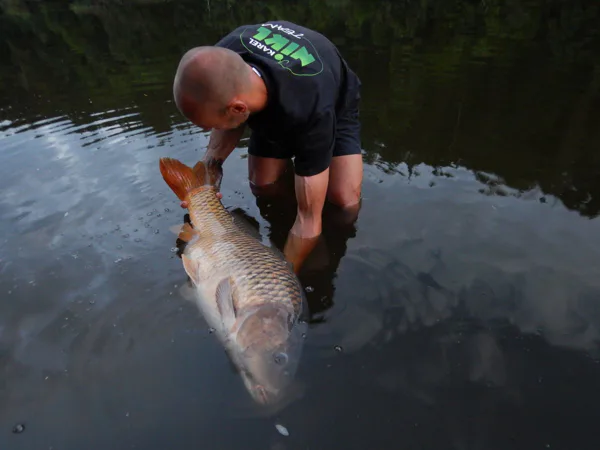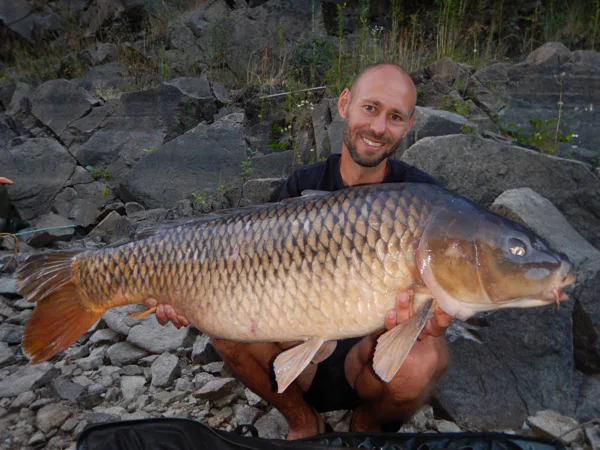 To mě navnadilo a cítil jsem, že tahle výprava by mohla být konečně úspěšná. Druhý den mě přítelkyně ukecala, že vymyslí návazec na jeden z prutů. Když mi oznámila, že pod háček dáme jednu kuličku Gigantiky společně s jednou kuličkou Scopex-squid, s tím, že na jedno z toho ten kapr určitě mít chuť bude, tak jsem se smál :) ale nakonec jsem svolil s tím, že jí teda udělám radost. Se slovy "jen počkej co na to přijde" ulehla do spacáku a šla spát... když se v noci "její" prut rozjel, byl jsem zvědavý co na to nalákala. Třináctikilový kapr mě opravdu potěšil. I přes velké vedro záběry přicházely pravidelně. Předposlední den jsem v tašce objevil posledních pár kuliček Criticals v příchuti Gigantika a tak jsem jí tam odpoledne zkusil poslat. Před setměním přichází krásná jízda. Hned jsem cítil větší rybu a tak jsem skočil do člunu. Krásný souboj završil 17-cti kilový šupináč v podběráku. To pro mě bylo dostatečně hezké zakončení této výpravy.