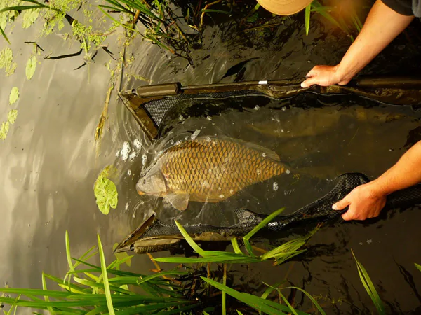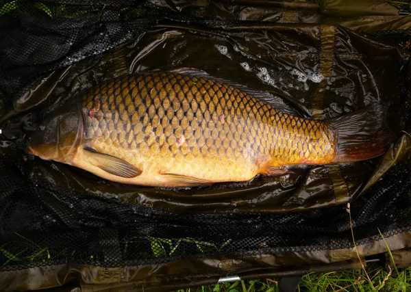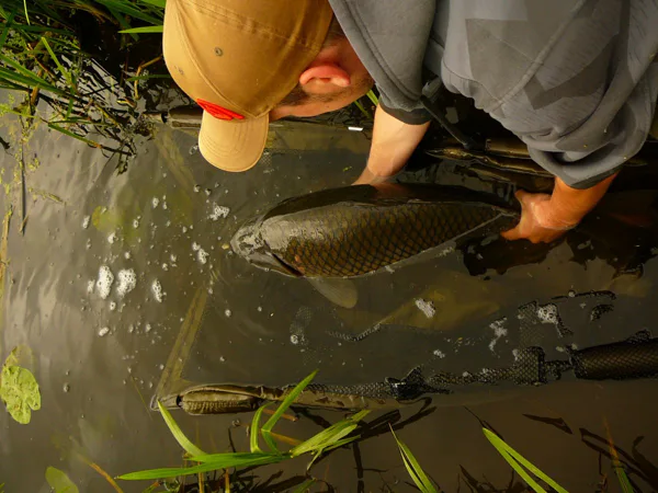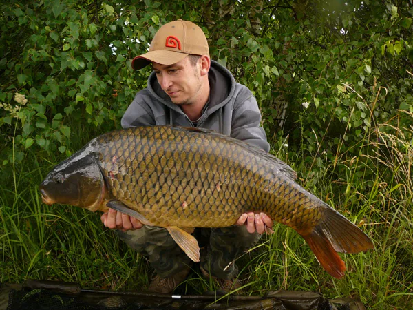 Cca po hodině přichází právě na tento prut jedno jediné píp. Hned jsem v akci a běžím k prutu, aniž bych ještě pořádně věděl, že jde právě o tento prut. Při dobíhání je ale jasné, že je to právě tento prut, protože je pořádně ohnutý a ve chvíli, kdy ho chci vzít do ruky, začíná přepadávat z vidličky do vody – uff, jaké jsem měl štěstí! Zásek sedí a kapr začíná bojovat. Je velmi naštvaný a nedává mi nic zadarmo. Je jako rozzuřený býk. Bojuje opravdu silně a chtěl by jet přes brzdu, ale nemůže. Nemá totiž kam! Sakra, tyto horké chvíle jsou opravdu nepříjemné!! Buď a nebo. Háček Centurion 2000 ATS s červem Mouthsnagger Shorty black nikdy nezklamal a ani tentokrát tomu nebylo jinak. Háček seděl v tlamce přímo ukázkově v pevné části levého koutku kapříčkovi tlamky a tak se mi díky tomu podařilo kapra při zdolání nejenom zastavit, ale i otočit a hlavně úspěšně zdolat. A právě díky koncové sestavě, kterou mám sestavenou od firmy Carp´R´Us, jsem mě tu čest podebrat nádherného šupináče, který se pyšnil váhou 12kg!!! Tak tohle byla akce, kterou stálo za to podniknout! Při focení jsem cítil cosi známého, ale chvíli mi trvalo, než jsem tuto známou vůni zařadil do správné kategorie. Oblečení, které jsem měl totiž celý den na závodech bylo přímo ,,nasáklé´´ klobásama a hlavně vůní benzínu, proto jsem se při pouštění smál, když jsem kapra pustil. Důvod byl prostý. Šlo totiž o ,,kapra s vůní benzínu´´.