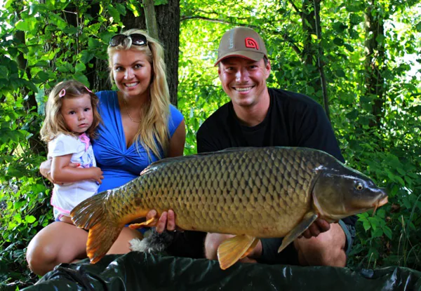 To dobrodružství bylo jen krátkodobé, ale o to více jsem si ho užil. Přeci jenom trávit čas na rybách s rodinnou pro mě bylo naprosto nové a nebudu zastírat, že i náročné. Přesvědčit 2,5 letou dceru, že rybaření je zábava bylo skoro nemožné. Proto jsem jeden prut obětoval chytání na feeder, abych jí zabavil ukázkou ryb, které žijí pod hladinou. Z toho byla nadšená, ale klouzačky a houpačky byly přeci jenom více zábavnější než mé rybaření. Tak snad časem. I přes horké počasí, které v té době panovalo se mi podařilo zdolat několik kapříků kolem 5 kilogramů. Na tento lov jsem si na jaře pořídil chytací pelety v příchuti Gigantika. A rozhodně mě nezklamaly. S přibývajícím časem jsem přešel na těžší kalibr a na oba pruty nasadil klasickou Gigantiku v průměru 21 mm. Jeden prut jsem umístil přímo do místa, kde jsem celý den krmil a druhý kousek opodál. Netrvalo to ani hodinu a prut přímo z krmného se rozjel. Po krásném boji se na konci ukázal dlouhý šupináč. Rodinou fotku jsem si nemohl odpustit, přál jsem si ji dost dlouho a toto byla první příležitost, kdy jsem si ji mohl udělat. Dcera se sice kapra bála, ale nakonec jsem ji přemluvil. Díky Elli! S přibývající tmou mě má rodina opouští a já mám před sebou ještě pár hodin lovu než nastane půlnoc. Pruty již nepřehazuji. Snažím se zachovat ve vodě co nejvíce klidu a přeji si, abych ještě alespoň jednoho kapra přemluvil. Hodinu před půlnocí se mi mé přání plní a přichází další záběr. Tentokrát přetahování s kaprem trvá o mnoho déle. Celou dobu ho zdolávám bez čelovky a díky tomu vnímám mnohem více detailů našeho souboje, než kdybych si přitom svítil. Světlo zapínám až když už vím, že je kapr dostatečně unaven a nelekne se náhlého kuželu světla. Kapra podebírám, zvedám a jásám. Nádherný 15tikiláč se válí v podložce. Přes samospoušť dělám pár fotek na památku a kapra pouštím opatrně zpět. Udělal jsi mi radost. Díky moc! Do konce lovu se již nic nestalo, ale mě to vůbec nevadilo. Zážitků bylo ten den až dost a na některé nezapomenu do konce života…