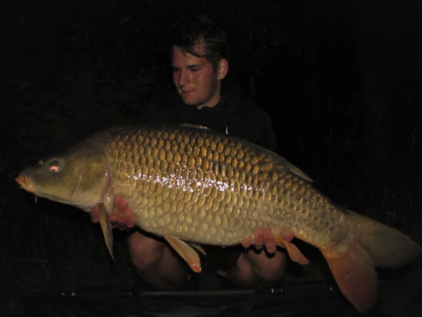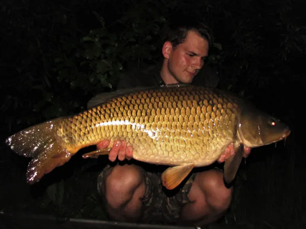 První letošní vycházku jsem podnikl hned po maturitní zkoušce a to k mé oblíbené řece. Po příjezdu mne překvapilo, že se u vody nacházelo doopravdy velké množství rybářů. Tak jako já si každý chtěl chytit ještě nevytřenou říční jikernačku. Naložil jsem tedy člun a rozhodl jsem se, že se přestěhuji někam do klidu, což se mi taky podařilo a zhruba kilometr po proudu jsem našel pěkné místo, které bylo přístupné pouze z vody. V klidu jsem si zakrmil mixem vymáčeného boilies Extasy a Scopex/Squid a připravil jsem si několik spolehlivých, říčních návazců ze šňůrky Strip-X a háčků Centurion. Nemohl jsem se dočkat, až po několika měsíční pauze opět nahodím. Hned brzy ráno pruty putovaly na svá místa, jeden směrem na koryto a druhý po proudu dolů. Zanedlouho přišly i první záběry a podařilo se mi několik pěkných jelců, kapr však žádný. Lov také ztěžovalo velké množství nečistot, které byly unášeny proudem, především květy topolů. Po další noci bez záběru jsem se rozhodl přestěhovat na jiné místo, což nyní již nebyl problém, protože břehy se značně vylidnily. Po přestěhování přišel i první záběr a mně se podařilo chytit letošního prvního říčního kapra nad 10 kg.