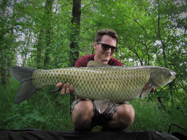 Již po tření jsem vyrazil opět k vodě, tentokrát na stoják. Zvolil jsem hlubší část revíru, kde se mi již v minulosti dařilo. Hned od začátku se mi podařilo chytit několik pěkných ryb. Překvapila mne především velká aktivita amurů, kteří brali i jen na čistě masové boilies jako je Kill Krill. To se mi tu ještě nestalo. Díky přijímacím zkouškám jsem se však musel vrátit domů. Po zkouškách jsem vyrazil opět k vodě, tentokrát na jiné místo. Hned po náhozu jsem dostal pomalý padák. Po zvednutí prutu jsem ucítil mohutný tah, že by konečné kapr? Po dlouhém souboji se na hladině objevilo další, mohutné ruské torpédo. Hned jak jsem rybu uviděl, věděl jsem, že se jedná o můj osobák. Po několika fotkách samospouští jsem amura vypustil zpět do vody. Do konce výpravy se mi podařilo chytit ještě několik menších amurů a nakonec i vytouženého kapra.