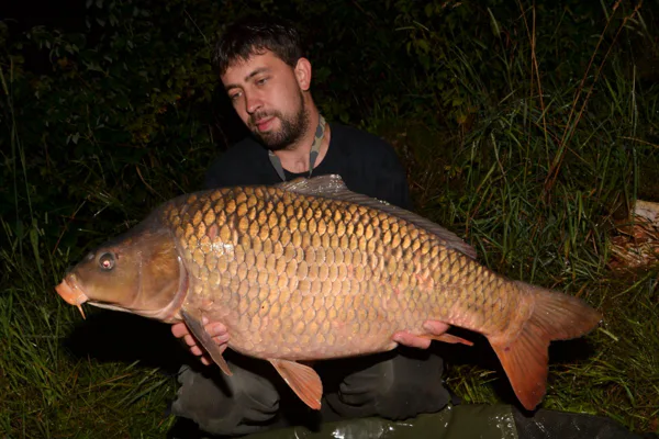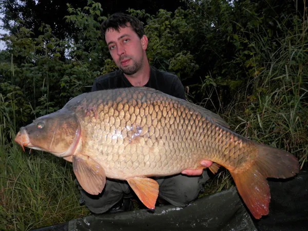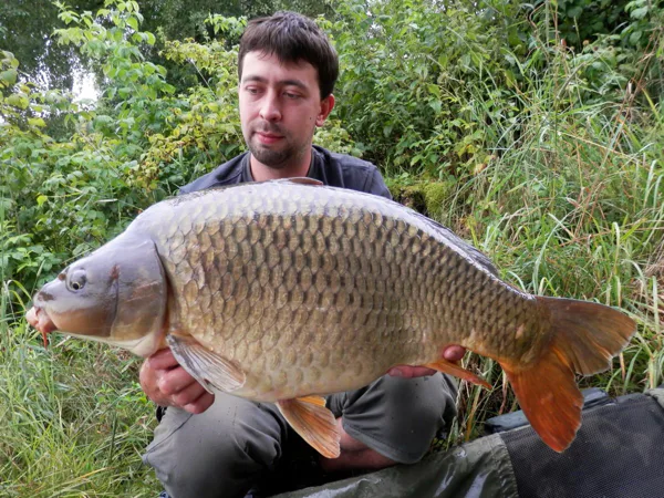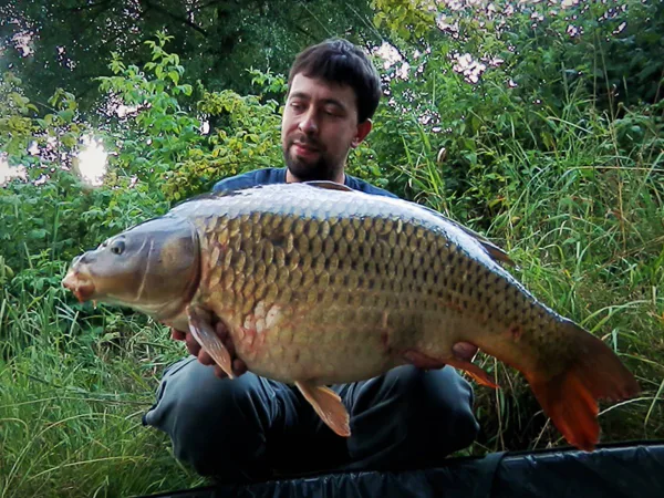 První den jsem ji jel večer omrknout bez prutů. Samozřejmě s kobrou - Massive Feedem - Dead Fish a trochou Kill Krilla. Našel jsem si místo v hlubší části nádrže, hlavně z důvodu, že tam nikdo nechytal. Nakrmil jsem a jel domů. Druhý den přišlo opravdu ochlazení. Celý den byly přeháňky. To je ono, říkal jsem si. Jen abych měl večer volné místo. K vodě jsem dorazil v sedm večer. Místo bylo volné. Nahodil jsem a nezbývalo nic jiného, než čekat na první záběr. Neuběhla ani hodina a ozvalo se první pípnutí. Zbystřel jsem, podíval se na prut a viděl, jak se pomalu začala roztáčet cívka. Čekal jsem nějakého násaďáka, ale hned bylo vidět, že se jedná o větší rybu. Po chvíli přetahované mám v podložce prvního místního šupináče. Při vážení se mi rozjel druhý prut, rychle jsem zapnul celou tašku a položil ji s kaprem do vody.…. Asi po 10 minutách mám na břehu druhého kapra. První měl lehce přes 10 kg a druhý 11,2 kg. Tak takovou parádu jsem nečekal!