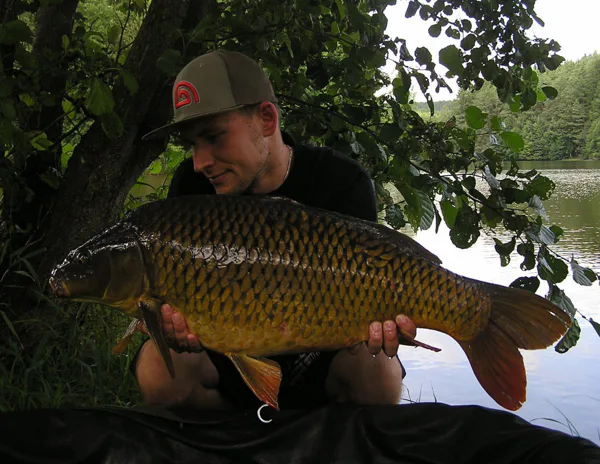 Návazec jsem měl zhotovený z tuhého fluorocarbonu Clearwateru 25 lb spolu s háčkem Continental Snag Hook č. 6, červíkem a šňůrky Smooth Hooklink braid 25 lb. Během prvních dvou dnů jsem zdolal tři lepší kousky od 8 do 9 kg. Byl jsem spokojený a věřil, že připlave ještě nějaký místní domorodec. Bohužel se tak nestalo a kapří aktivita byla poslední dva dny mizivá, až nulová. Ačkoliv se mi už nepovedlo dostat do podběráku ještě většího jedince než zmíněné tři, tak jsem odjížděl spokojený. První vycházka na tento revír, krásná příroda, klid a tři na tuto vodu už hezčí kapři zvěčnění ve fotoaparátu.