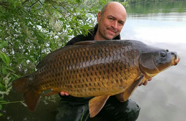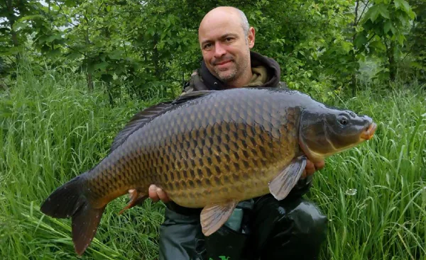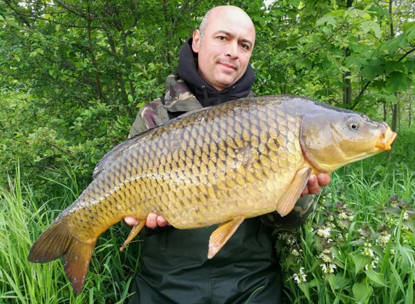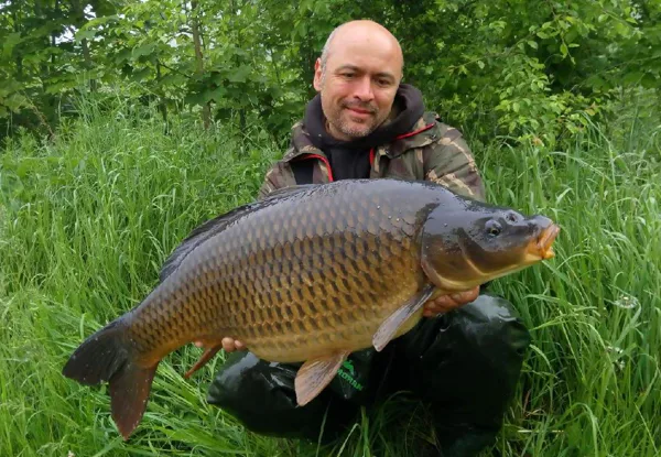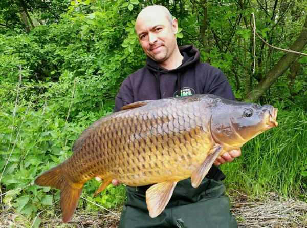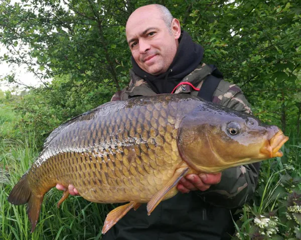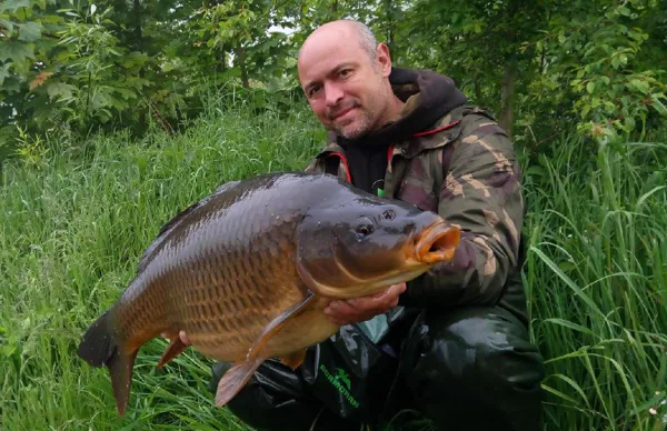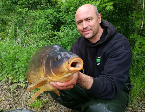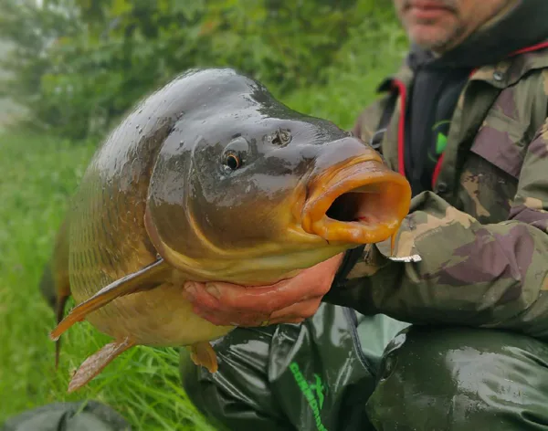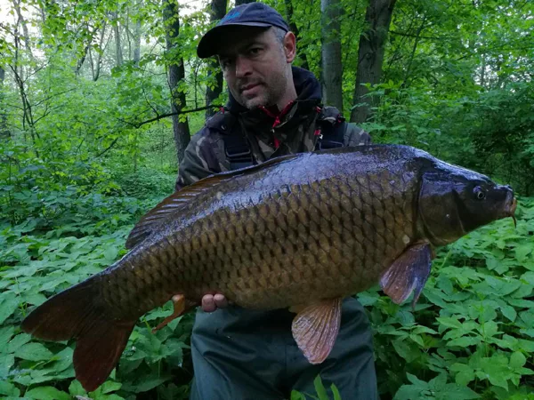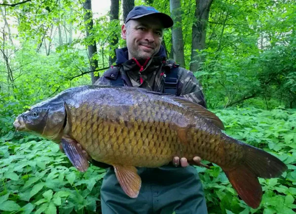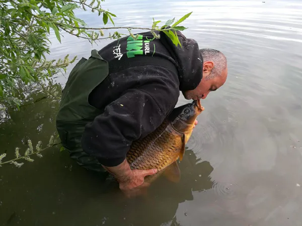 A opravdu netrvalo dlouho, snad do 15 minut se rozezněl příposlech. A odjíždí prut z vymočenou kuličkou Můry.,, Tak to bylo rychlý! Ale čekal jsem to“ Háček - Centurion doplněn o rovnátko Mouthsnagger opět odvedl skvělou práci a já zhruba po 10 minutách, na druhý pokus navádím do podběráku krásného 96 cm dlouhého šupináče a 12,8 kg. Tento kapr je pro mě dalším pokladem na svaz. vodě. Svým vzhledem je nezaměnitelný. Z boku měl dvě zhojená zranění pravděpodobně ani né od sumce, ale nejspíše od nějakého nešetrného zacházení, ale jinak byl ve skvělé bojovné kondici a tak dostal jméno ,, Válečník“. A já doufám, že se sním třeba za pár let znovu setkám na nějaké ještě zajímavější váze. Kolem 6 hodiny přišel další záběr tentokrát na boilie Extasy! A za nedlouho mi leží na podložce další šupík o váze11,5 kg. Do 9 hodin mlha téměř opadla a já dostávám na pruty další a další ryby do 13,5 kg. Místa jsem začal dokrmovat spombem, peletami v příchuti Kill Krill a Můrou...nesměl chybět ani partikl – ( řepka, pšenice). Z jara používám pelety z velkou oblibou, jsou výbornou zbraní pro urychlení reakce kaprů ke žraní. Během odpoledne zabralo i několik menších kaprů do 5 kg. Které také z jara potěší a po ošetření tlamky od vpichu dezinfekcí - Carp Doctor, byly vráceny do jejich domova bez focení. Byl to další užasný den u vody plný záběrů a zážitků, které se mi vryly hluboko do paměti. V posledním dni výpravy se mi popvedlo pochytat na Extasy, další krásné kapry, ale o tom zase příště.