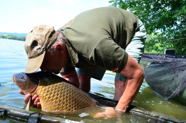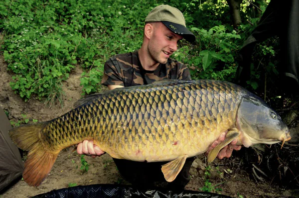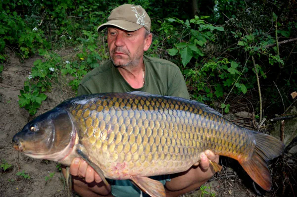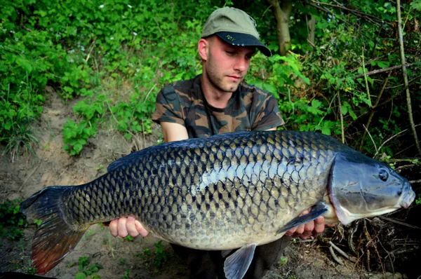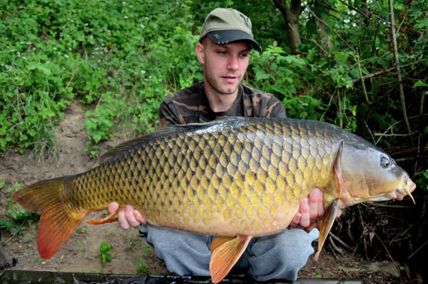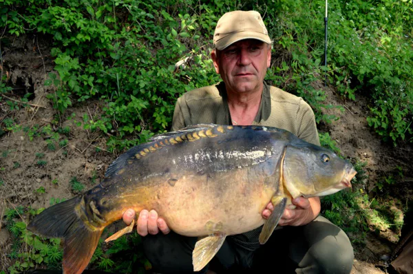 I druhý den měl záběry, ryby už se mu dařilo zdolat, dokonce zdolal nádherného šupináče s váhou 16kg+. Já jsem byl dva dny bez záběru a už mi to vrtalo hlavou. Ráno ve 4hod při zavážení jakoby mě něco osvítilo a vyvezl jsem jeden prut na větší vzdálenost, kde jsem našel tvrdé vyvýšené místo a označil si ho na GPS. V 7hod ráno mi přišel první záběr, menší ryba, ale od té doby jsem se nezastavil. Záběry z toho prutu chodily po hodině a zdolal jsem i krásné ryby 13,6kg a metrového vytřeného šupináče 17kg+. Táta měl mezitím menší ryby. V průběhu týdne jsme udělali ještě plno kaprů do 13kg a mě se povedl krásný tmavý šupináč 14,2kg. Ke konci týdne se hodně oteplilo a záběry už byly spíše náhodné. Ale i tak jsme byli velmi spokojení.