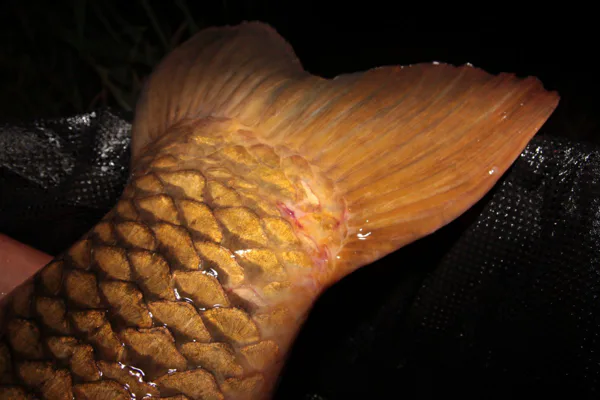 Přikrmil jsem pouze pár kuliček extase a nahodil pod patu do 9 m hloubky. Neměl jsem moc času, ale něco mi říkalo, že to přijde. Návazce jsem zvolil kombi složený z Clearwater 25lb,Strip X, 25lb,Continental v.6 s Mouthsnaggrem.