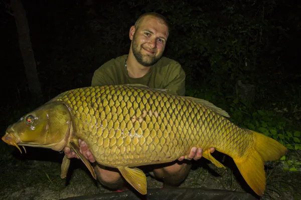 Keďže sa jednalo o prechod z jari na leto, voda ešte nebola prehriata, volil som preto plytšiu časť jazera kde nebola hĺbka väčšia ako 2 metre, zhruba na sto metrov od brehu sa mi podarilo „vyklepkať“ prechod zo štrku na tvrdé blato, práve toto miesto sa mi pozdávalo najviac. Rozkrmil som okruh spomínanou „Slivkou“ a veril som , že som trafil do čierneho. Prvý večer sa toho moc neudialo. Na druhý deň ráno dostávam razantnú jazdu, kde som mal pod šestkou Longshankom našité dve 24mm gulôčky „slivky“. Po neobvyklom zdolávaní a atypických výpadoch zisťujem, že mi to zobrala cez meter dlhá „Kočka“. Po nejakom čase, ktorý som obetoval trápením sa so sumcami okolo metra, ktorí zrejme prišli s veľkou riečnou vodou. Neskôr sa mi podarilo dostať na breh aj pár krásnych dlhých šupíkov z ktorých bol naj. 13,80kg s obrovským kormidlom, ktorý ma krásne potrápil a zadarmo mi veru nedal ani meter vlasca. Medzi tým sa mi podarilo dostať na breh o kilo ľahšieho šupíka s nepeknou veľkou ranou, ktorú mal zrejme spôsobenú niekoho šokovou šnúrou. Ranu som mu okamžite vydezinfikoval a po pár pózach pred objektívom putoval naspäť domov.