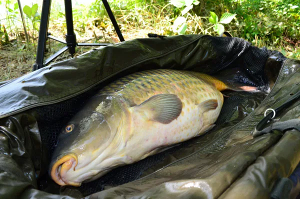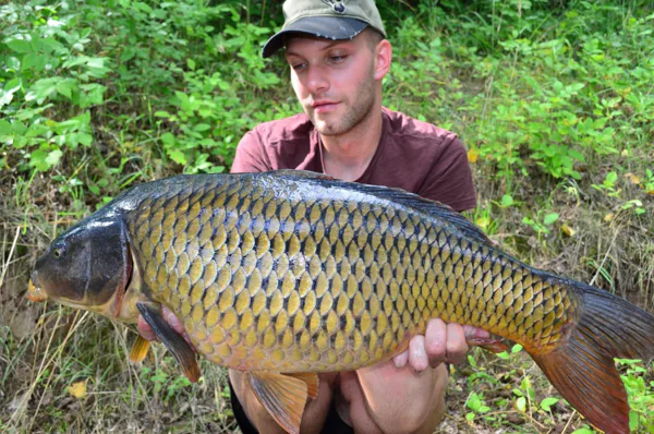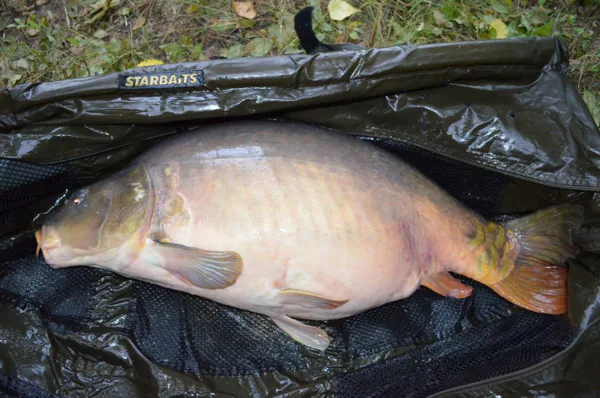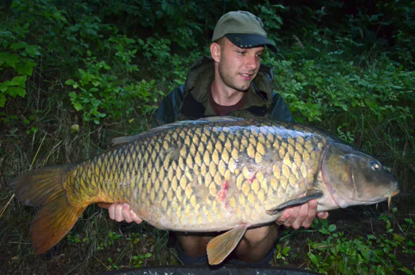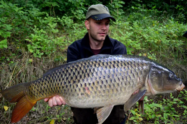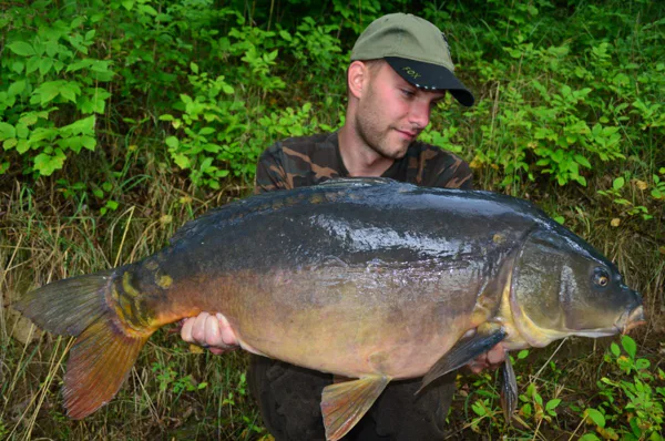 Po příjezdu jsem si vzhledem k předpovědi počasí přichvátl s vybalováním, protože radar ukazoval vydatný déšť a ani jsem vše pořádně nestihl připravit a předpověď se potvrdila. V nejsilnějším dešti, kdy jsem v klidu ležel ve spacáku a ani ve snu bych nečekal po třech hodinách lovu záběr, tak jako na potvoru záběr přišel. Rychle jsem natáhl bundu a vyrazil na vodu. Tam jsem ovšem jezdil s rybou ještě další půl hodinu a po podebrání jsem byl sice totálně na žmach, ale ta ryba za to stála. Necelý metr dlouhý šupináč, ještě se znatelnými ránami po tření a 18,2kg. Super začátek jsem si tak říkal v duchu. Do večera už nic nepřišlo, v půlnoci jsem to stáhl, dokrmil místo a ráno to nahodil zpět. Každé ráno chodil první záběr až kolem šesté hodiny, ale pak až do oběda byla série záběrů takřka po hodině. Takto to bylo čtyři dny po sobě a já pochytal neskutečné ryby, v čele s nádherným pupkatým lyscem 90cm 17,4 kg. Za celou výpravu jsem udělal necelých 50 záběrů z toho ty dvě zmiňované ryby výše, dále dvě ryby kolem 15kg a více jak třetina ryb přesáhla hranici 10 kg. Všechny ryby jsem nachytal na Gigantiku, z kraje výpravy jsem na druhý prut zkoušel i jiné boilies, nicméně nedělám to často, ale zbytek výpravy byla na obou prutech. Někde na panáčka, někde samotná potápivá kulička a nebo Criticals. Když se člověk rybám trefí do chuti, není důvod vymýšlet něco jiného.