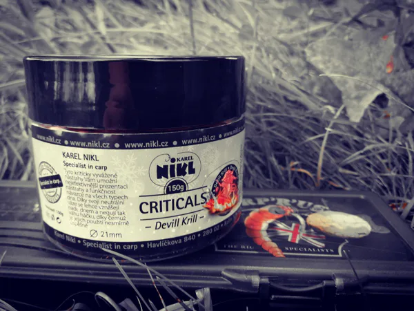 V tu chvíli jsem byl tak zoufalý, že jsem už málem dával pod háček houskový knedlík a boosteroval jej gulášem, abych konečně prolomil smůlu. Od tohoto zoufalého činu mě ale zachránila dóza 21mm boilie Criticals Devill Krill. Tuto dózu jsem si bral na zkoušku při mé poslední návštěvě v Kolíně s tím, že ji někdy vyzkouším. Na kriticky vyvážené boilie jsem do této chvíle nechytal a tak byl čas ho vyzkoušet. Koneckonců nebylo co ztratit. Spíše naopak jsem si říkal, že pokud ryby neberou nebo nechtějí brát, tak jim odprezentuji něco, co do této chvíle neviděly. Volba tedy byla jasná a šlo se k vodě.