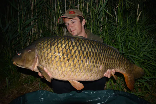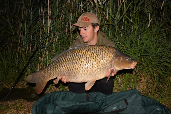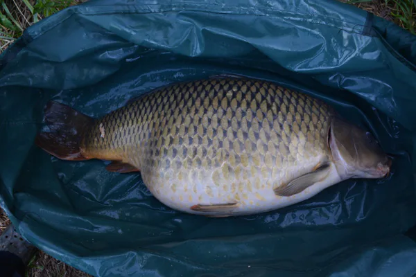 Nevymýšlím nic nového, protože taktika z minulého dne fungovala. Takže opět navlékám na jeden prut samotnou kouli Magnuse a na druhý prut opět Magnuse s plovkou Extasy. Jakmile beru prut do ruky, že ho pošlu na zakrmené místo, tak zaregistruji dva celkem slušné šplouchance na místě kam jsem směřoval náhozy. Na nic nečekám, rychle oba pruty nahazuji. Jeden šel pár metrů za krmné místo, kde šla hloubka z 5 na 7,5 metrů a druhý 20 metrů od krmného místa. Nikdy nechytám přímo v zakrmeném místě, ale spíše se ho snažím obchytávat. Ryby dávaly jasně vědět , že se kolem krmného místa pohybují ,tak jsem doufal, že se záběr brzy dostaví. Pár minut jsem za tmy poslouchal vodu a pak jsem si šel lehnout zpět do spacáku. Jen co ulehám a zavírám spacák, kontroluji přípalech jestli je zapnutý. Zrovna když ho beru do ruky, tak dostávám jízdu. Jak jsem se lekl příposlech mi vypadl z ruky, ale to už pospíchám k prutu. Venku už se pomalu rozednívalo, tak jsem měl nad rybou kontrolu. Bylo znát že se jedná opět o většího jedince. Kousek od břehu se zachytil do trav, takže jsem musel skočit do člunu a souboj dokončit. Nakonec trávy uvolňují rybu ze svého sevření a já spatřuji pod člunem mohutné tělo kapra. Pár posledních výpadů a kapr končí v síti podběráku. Kapra vytahuji a opatrně pokládám na podlahu mého Raptora. Hned si tipuji váhu a v duchu si myslím, že má opět přes 20 kg. Je to přibližně stejná doba jako den před tím a já mám druhou obludu. Po zvážení si vše potvrzuji. Krásný šupináč s koulí Magnusu a výraznou extasovou plovkou ležící v podložce má rovných 21kg.