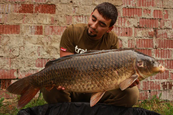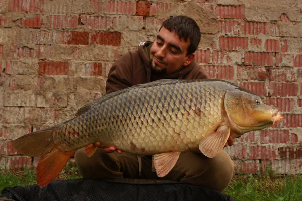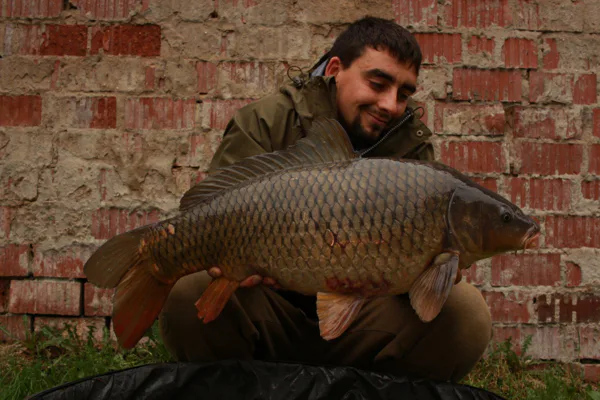 Jednoho dne jsem se rozhodl rozkrmit řeku ve městě s cílem udělat si fotku trošku jinou než klasickou s pozadím přirody. Před prací jsem se stavil u řeky a za velmi silného deště nakobroval 3kg Skopex-Sqiud o průměru 21 mm k protějšímu břehu, kde se dno prudce svažuje do koryta řeky.O polední pauze jsem se trhl z práce a odjel dokrmit místo aby bylo pěkně rozjeté na odpolední pár hodinový lov. Po pracovní době neztrácím ani minutu a natěšený jedu rovnou k řece. Počasí bylo jak na houpačce, chvilku sluníčko chvilku prudký liják. Pravý prut s dvěma kuličkama 21mm Scopex-Sqiud odhazuji přímo do krmáku zatím co druhý prut hodně po proudu dolů pod krmák s jednou kuličkou Scopex-Sqiud. Na první záběr jsem nečekal dlouho a mohl si tak užít první zdolávání v městském ruchu. Kapr byl z té menší kategorie a tak ho vypínám u břehu. Toutu rybou se spustila série záběrů. Za čtyři hodiny lovu jsem úspěšně podebral 5 kaprů, z nich tři jsem zvěčnil u zdi s opadanou omítkou. Úkol splněn na 100% a teď zpět k naší krásné přírodě.