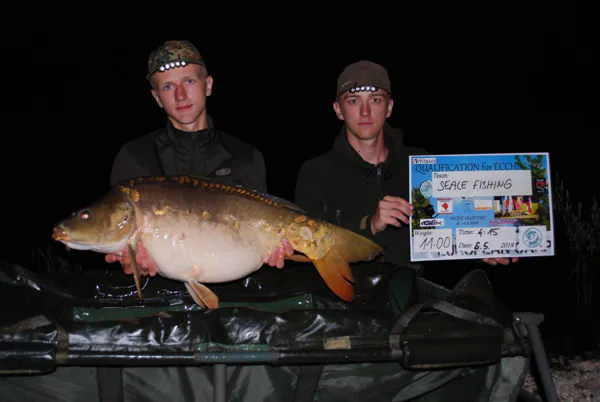 BAM ! BAM ! Je to tam! Najväčšia ryba preteku, moja životná ryba a zároveň naše druhé prepisovanie. V tú chvíľu sa vo mne miešali všetky pocity. Nevedel som či mám kričať, či skákať od radosti. Parádny šupináč s váhou 16,30kg. Tak táto ryba isto zamiešala karty. Hodinu pred koncom preteku prišiel znovu na ten istý prút ďalší šupináč. Krásne sfarbený kapor jednoducho bez jedinej chybičky, ktorý vážil 11,13kg. Takže tretie prepisovanie, výborné! Pomaly sa blíži koniec preteku a my začíname baliť. Táto voda spolu s prírodou, ktorá tam vládne mi dala nezabudnuteľné zážitky, skúseností a neskutočné emócie, ktoré ostanú v mojej pamäti veľmi, veľmi dlhú dobu. Za tento víkend sa moje skúsenosti a zručnosti o niečo zlepšili a znovu som sa niečo nové priučil od skúsenejších. Tak, zbalený sme a môžeme sa premiestniť na vyhodnotenie. Nakoniec sme skončili na prvom mieste a získali cenu za najťažšiu bodovanú rybu a priamy postup na ECCHJ. Teším sa, že spolu s bratom Adamom už o pár týždňov zmeriame svoje sily s najlepšími juniormi z Európy na ECCHJ a dúfam, že budeme našu krajinu reprezentovať v čo najlepšom mene.