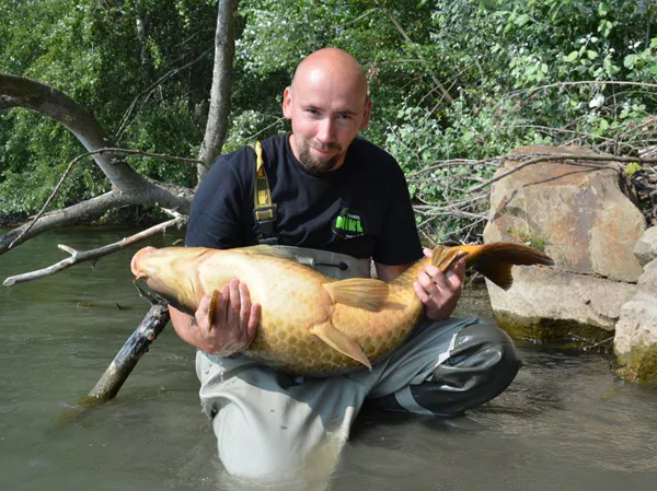 Tahle letní dvacetikilová puma zobla 2x24mm dopředu vymáčenou Gigantiku. Souboj jak má být a velká radost, když jsme ho napasoval do podběráku. Géko prostě umí chytat velký kapry.