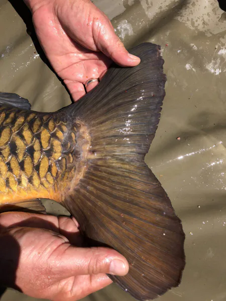 Jeli jsme s Kubou k vodě jen na noc, přesto jsme vykřesali 2 záběry. Během slunného rána se nám brutálně rozjel prut, u něhož jsme zrovna seděli, to byla paráda! S východem Slunce jsme si tak mohli užívat krásný souboj. Po několika desítkách minut mi Kubík podebírá perfektního tmavého šupináče. Času jsme měli málo, přesto při balení přišel ještě jeden záběr, který také proměňujeme. Tyhle koule prostě šlapou! Těsně před odjezdem místo řádně prokrmuji, neboť pokud se nic nepokazí, budeme za dva dny i s holkami zase zpět.